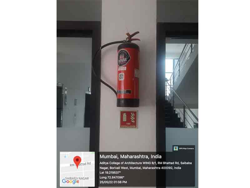 At Aditya College of Art, Architecture and Design, the safety and well-being of our students, staff, and visitors are of utmost importance. All fire safety equipment on campus is maintained and inspected regularly by certified and authorized agencies. We ensure that Form B – the mandatory fire safety compliance certificate – is obtained periodically from the concerned authority.