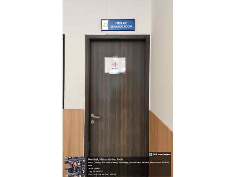 First Aid cum Sick Room – Health and Safety FirstThe First Aid cum Sick Room at Aditya College of Art, Architecture and Design is a dedicated space ensuring the health, safety, and well-being of students, faculty, and staff. It is equipped with basic medical supplies, first aid kits, a patient bed, and essential facilities to provide immediate care in case of minor injuries or health issues during college hours. The room offers a safe and hygienic environment for rest and initial treatment until further medical assistance, if required, is arranged. This facility reflects the institution’s commitment to providing a secure and supportive campus environment for all.